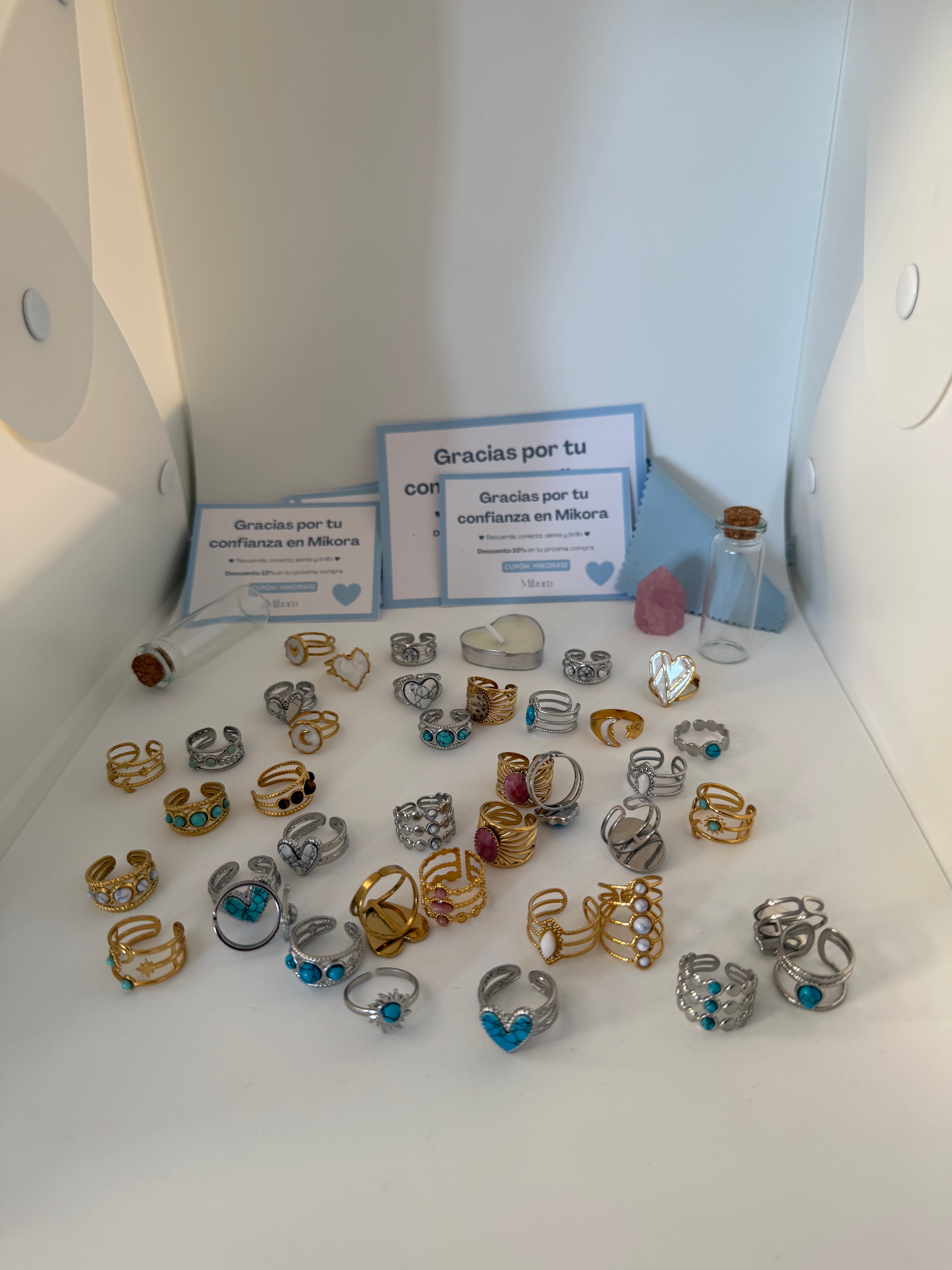 Las joyas de Mikora no vienen solas. Vienen dentro de una caja ritual experiencial, preparada con intención, con mensaje, con fuego, con luz. Porque a veces una joya no es un accesorio. Es un ritual. Una forma de volver a ti.
